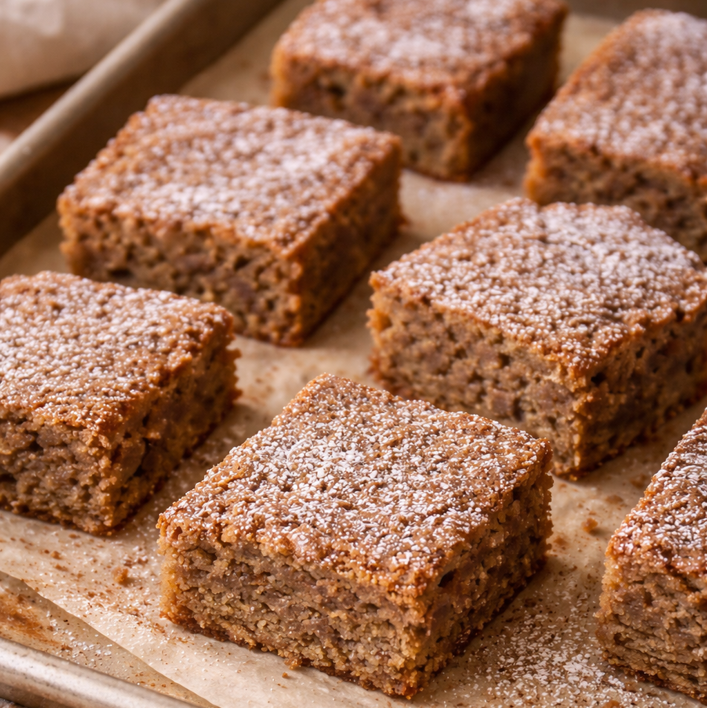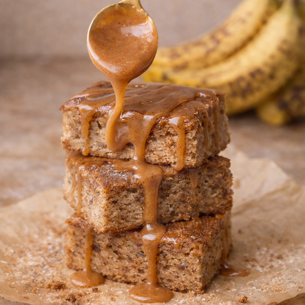 Moist banana bars layered with a warm cinnamon swirl and finished with a naturally sweet cinnamon-maple glaze.